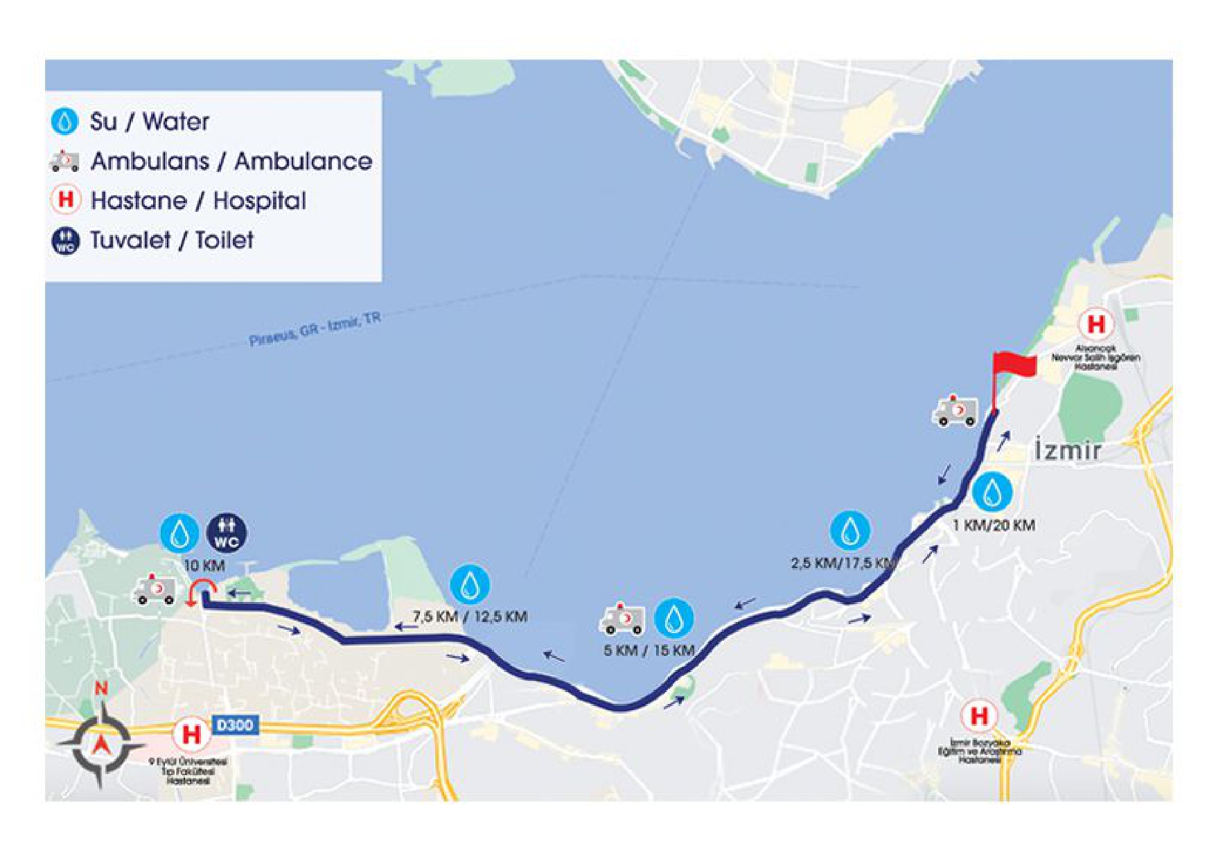 Start from Cumhuriyet Square and will continue until the turning point in front of İnciraltı Sports facilities and will finish in Cumhuriyet Square.